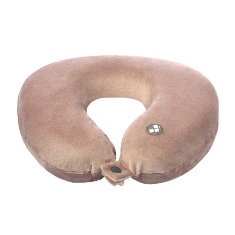 Удобная кнопочная застёжка надёжно фиксирует подушку на шее, а в комплект входит прочный круглый чехол на молнии — для компактного хранения и перевозки.