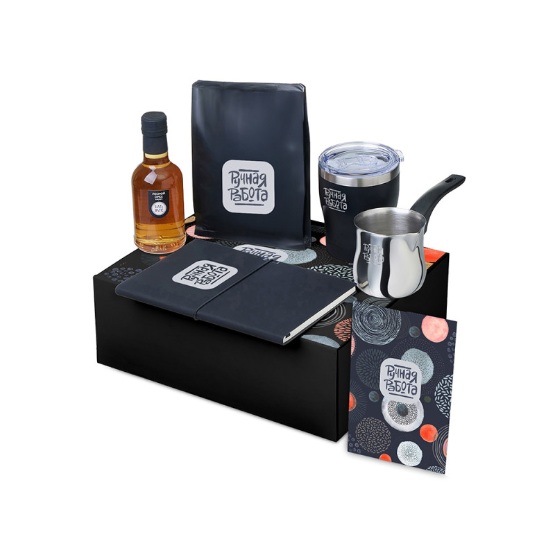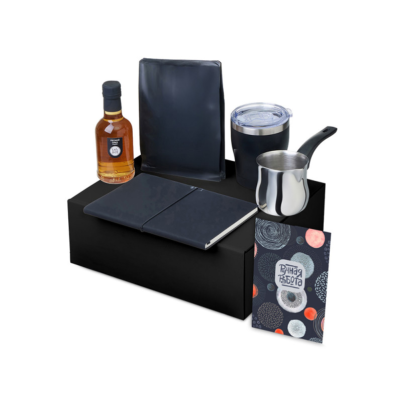 | Материал товара | сироп - стекло, блокнот - искусственная кожа, бумага, турка - нержавеющая сталь, бакелит, кофе - пластик, термокружка - нержавеющая сталь, керамика, полипропилен, мешок - нетканый материал (спанбонд), коробка -картон |