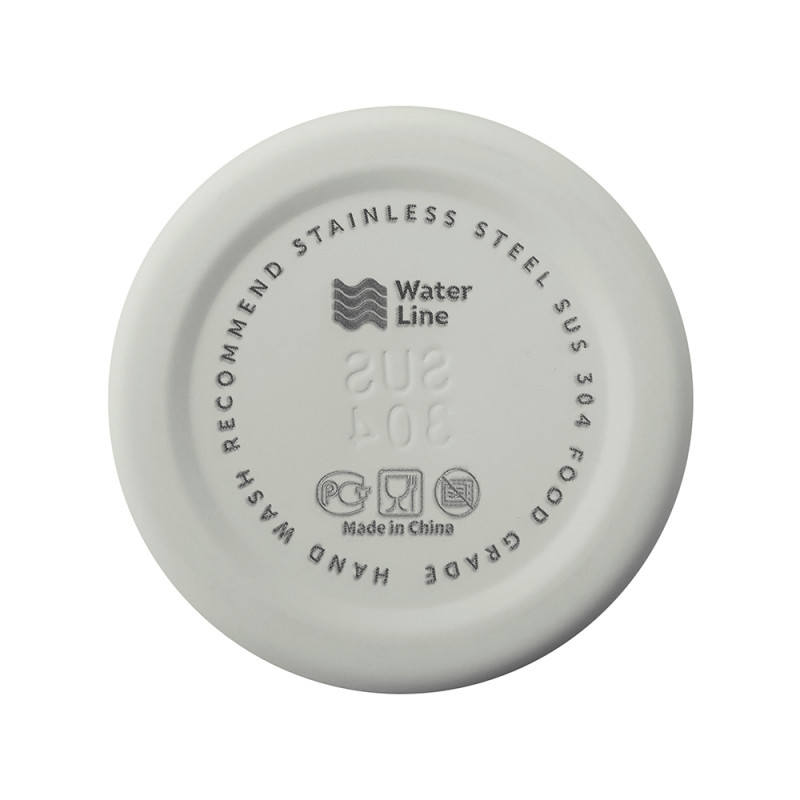 Поверхность стальной бутылки для воды Rely бренда Waterline имеет матовую текстуру. Это делает Rely интересным продуктом для брендирования. Например, один из множества вариантов - гравировка на ровной поверхности крышки.