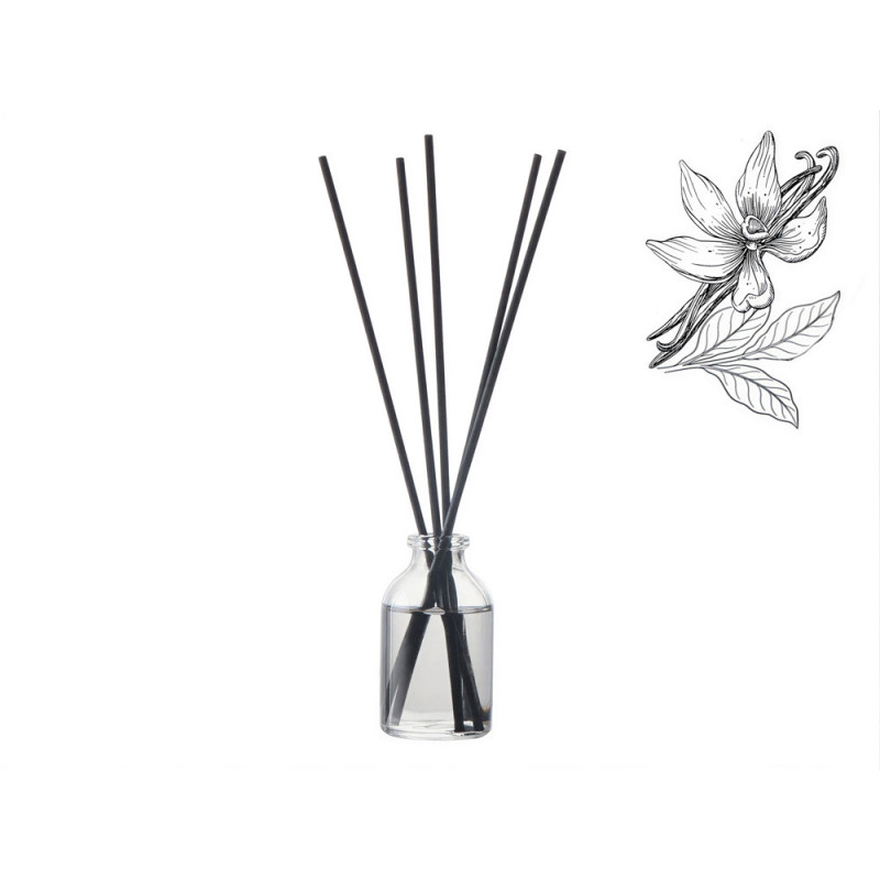 Прозрачный флакон без лишних деталей гармонично впишется в любой интерьер, а чёрные фибровые палочки обеспечат равномерное и продолжительное распространение аромата.