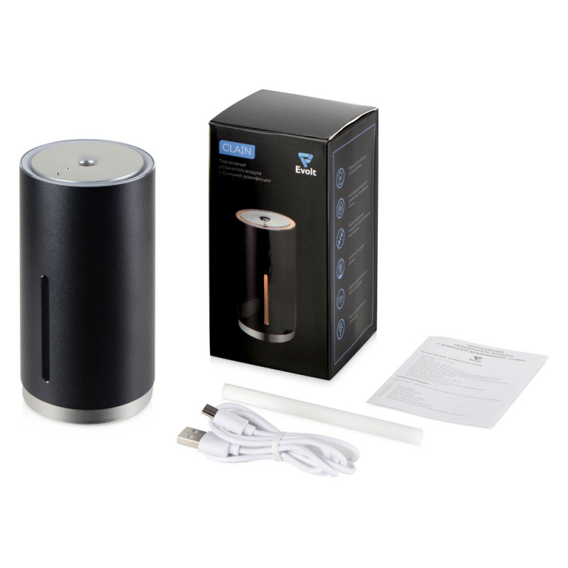 Увлажнитель Clain от Evolt работает от аккумулятора, благодаря чему вы можете использовать его в любой точке своей квартиры. Благодаря небольшому размеру Clain можно использовать не только дома и в офисе, но и в автомобиле: он такой маленький, что помещается даже в автомобильный подстаканник! Устройство можно использовать в качестве дезинфектора: для этого вместо воды добавьте в емкость спирт 75%.