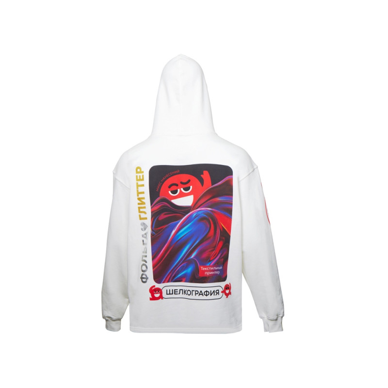 Худи оверсайз «Alpha.01» унисекс, молочный, все виды нанесения на текстиле на одной толстовке